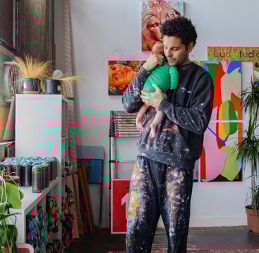 Working with a range of motifs, Agwa’s playful use of colour and shape creates bold, unified artworks. His practice prioritises accessibility and connectivity.