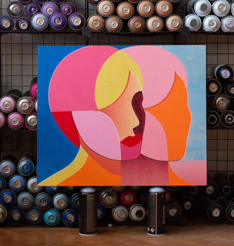 'Double Exposure' 2020 Acrylic and Spray Paint on Tintoretto Board 50cmx60cm